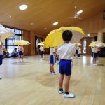 やまびこ交通安全教室の傘さし歩行訓練がありました。