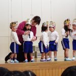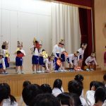 三匹のこぶたのエプロンシアターを見て (こぶたの)しっぽとりをしてみんなで遊びました。