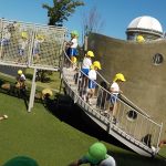 満3歳児たんぽぽ組と3歳児さくら組は中消防署へ消防車を見に行きました.消防士さんにお話しもしていただきみんな嬉しそうです。